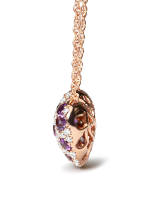 18K Rose Gold 3/4 Cttw Diamond and Purple Amethyst Cluster Heart Shape 18" Pendant Necklace (G-H Color, SI1-SI2 Clarity)