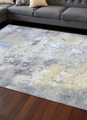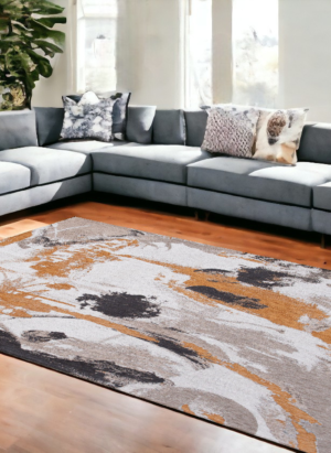 9' X 13' Gray and White Abstract Non Skid Area Rug