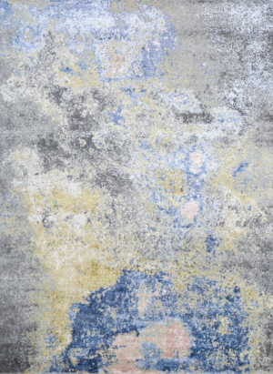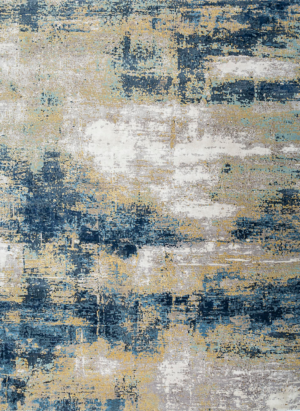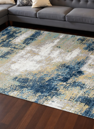 8' X 10' Blue Ivory and Gold Abstract Hand Knotted Area Rug