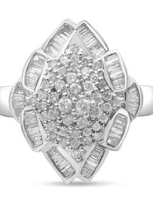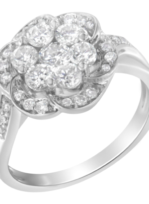 14K White Gold Floral Cluster Diamond Ring (1 Cttw, H-I Color, SI2-I1 Clarity)