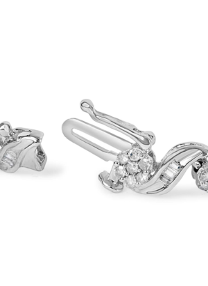 10K White Gold 2.00 Cttw Round-Cut and Baguette-Cut Diamond Floral Design Swirl Link 7" Bracelet (I-J Color, I1-I2 Clarity)