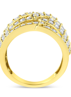 10K Yellow Gold 3.00 Cttw Diamond Multi Row Bypass Wave Cocktail Band Ring (J-K Color, I1-I2 Clarity)