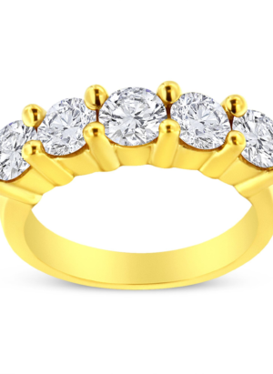 14K Yellow Gold Plated .925 Sterling Silver 2.0 Cttw Shared Prong Set Diamond 5 Stone Wedding Band Ring (J-K Color, I1-I2 Clarity)