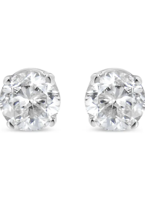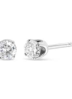 14K White Gold 3/4 Cttw Round Brilliant-Cut Near Colorless Diamond Classic 4-Prong Stud Earrings (H-I Color, SI1-SI2 Clarity)