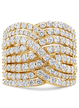 10K Yellow Gold 3.0 Cttw Diamond Eight-Row Bypass Crossover Statement Band Ring (H-I Color, I2-I3 Clarity)