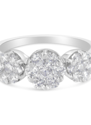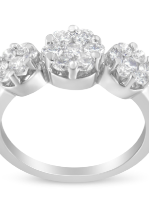 14K White Gold 1-1/4 Cttw Brilliant Cut Diamond Three Round Floral Clusters Engagement or Fashion Ring (H-I Color, SI2-I1 Clarity)