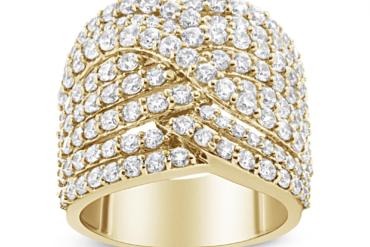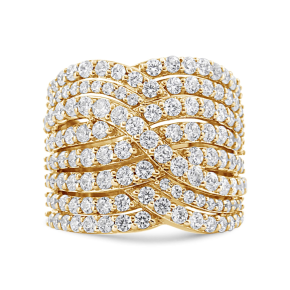 10K Yellow Gold 3.0 Cttw Diamond Eight-Row Bypass Crossover Statement Band Ring (H-I Color, I2-I3 Clarity)