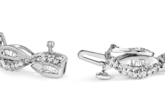 14K White Gold 2.00 Cttw Diamond Swirl and Pear Shape Link Bracelet (I-J Color, I2-I3 Clarity) – 7″