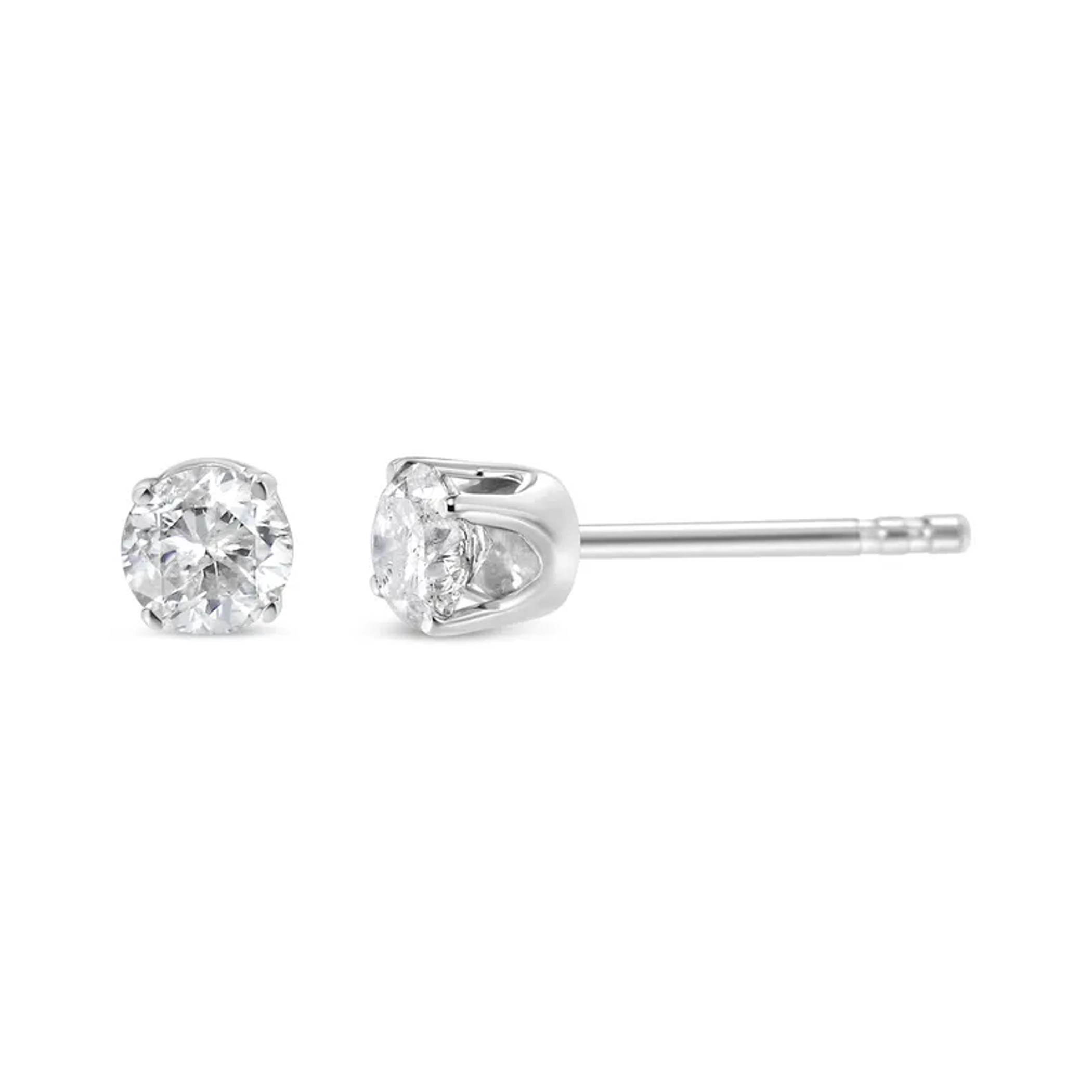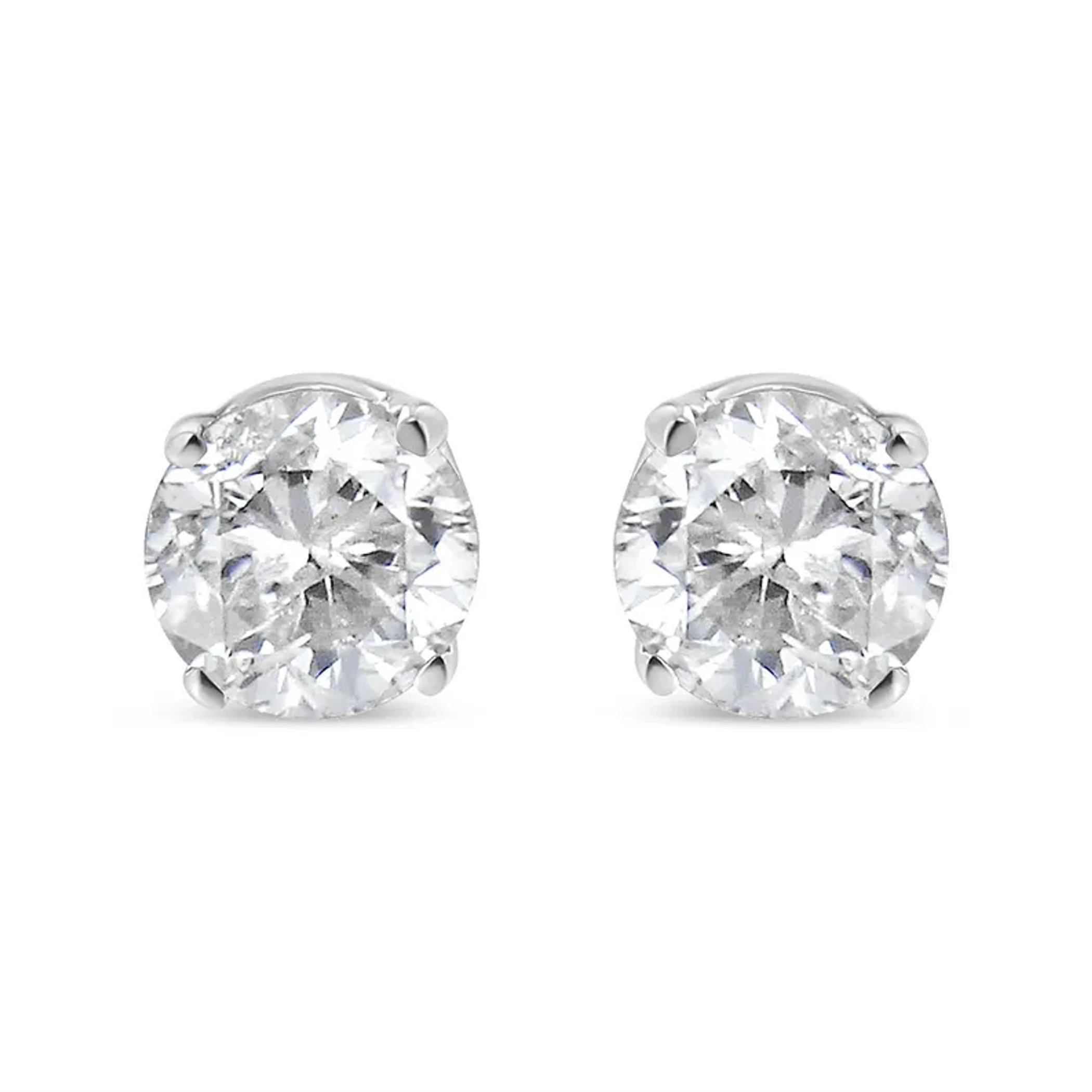 14K White Gold 3/4 Cttw Round Brilliant-Cut Near Colorless Diamond Classic 4-Prong Stud Earrings (H-I Color, SI1-SI2 Clarity)