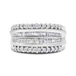 14K Yellow and White Gold 1.00 Cttw Round and Baguette-Cut Diamond Ballerina Cocktail Ring (H-I Color, SI2-I1 Clarity)