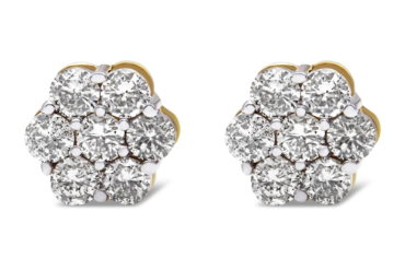 Want to add a touch of sweet femininity to your daily ensemble? These floral cluster stud earrings might just be the jewelry you need. Made up of 14 natural round shape diamonds (seven on each side), the stunning pair feature stones in prong setting that total up to 2 cttw. The 14K yellow gold base lends that pop of colour, and the screw back gives it an extra secure finish.