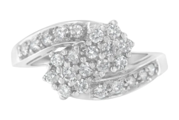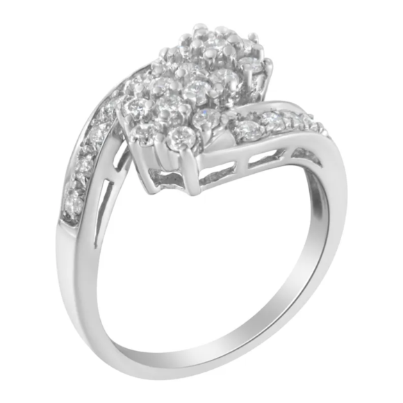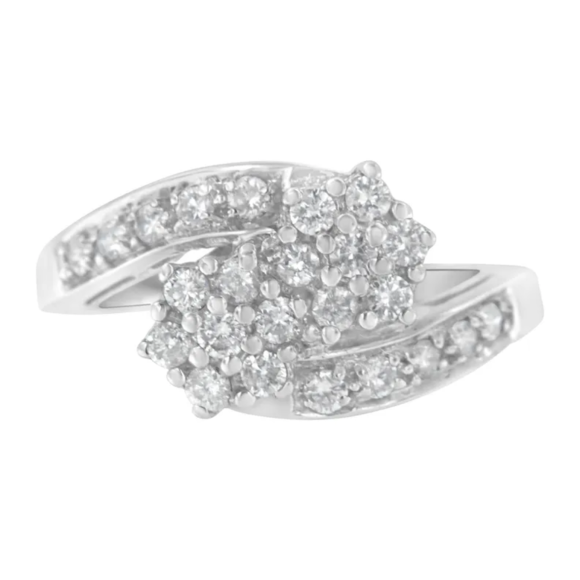 14KT White Gold Diamond Cluster Ring Band (7/8 cttw, H-I Color, I1-I2 Clarity)