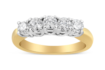 18K Yellow Gold 1.0 Cttw 4 Prong Set Round Cut Diamond Step up 5 Stone Ring Band (F-G Color, SI1-SI2 Clarity)