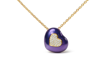 This sweet heart-shaped pendant necklace will set her heart all aflutter, cast in 18k yellow gold with blue enamel. A cluster of round, prong-set diamonds gathers in the shape of a heart at the center of the pendant for a dose of sparkling romance. These glitzy stones total 1/10 cttw with an approximate G-H Color and SI1-SI2 Clarity. This symbol of love suspends from a contemporary 18″ cable chain that fastens with a lobster claw clasp. A perfect gift for those you cherish with all of your heart. Chain is adjustable up to 16″ – 18″
