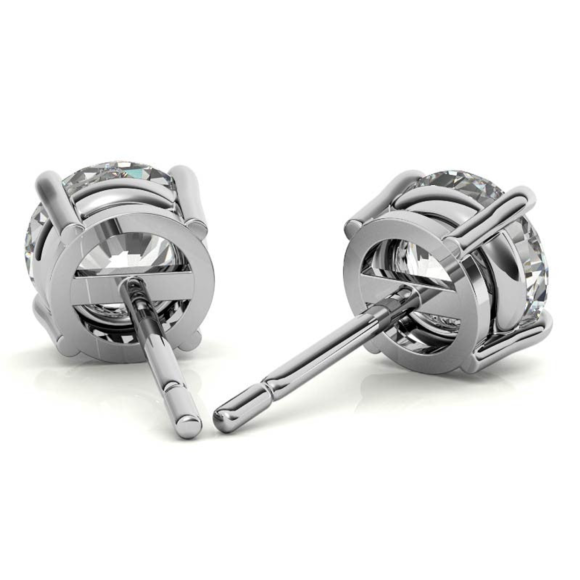 - CLASSIC BRILLIANCE – A perfectly matched pair of 4.00 CTW G-VS round-cut, ethically-sourced, lab-grown diamond stud earrings that sets in close to the ear. The earrings are crafted in high-polished 14-karat White Gold and fasten securely with a push-back. This pair of diamond studs are unmistakably the easiest way to add a touch of class and sophistication to your style