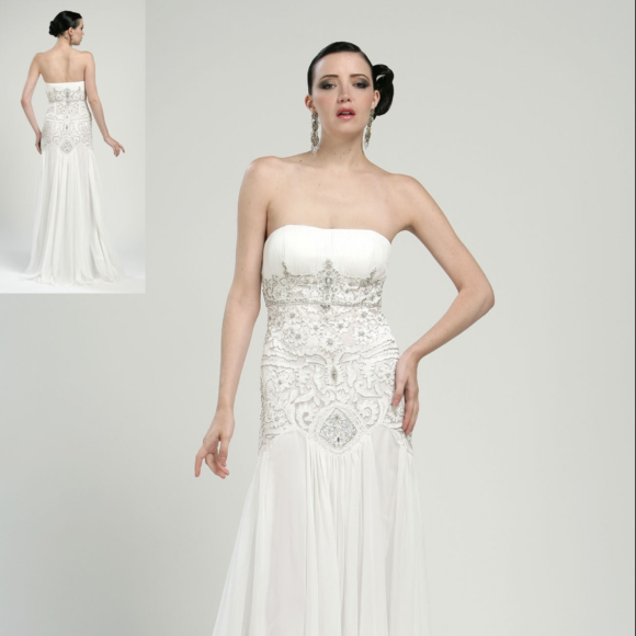 Feel effortlessly light and regal with this Sue Wong strapless gown. Fully lined and with an embellished torso and floating skirt, you have all the right ingredients to look positively radiant. Please allow 10-14 days for delivery.