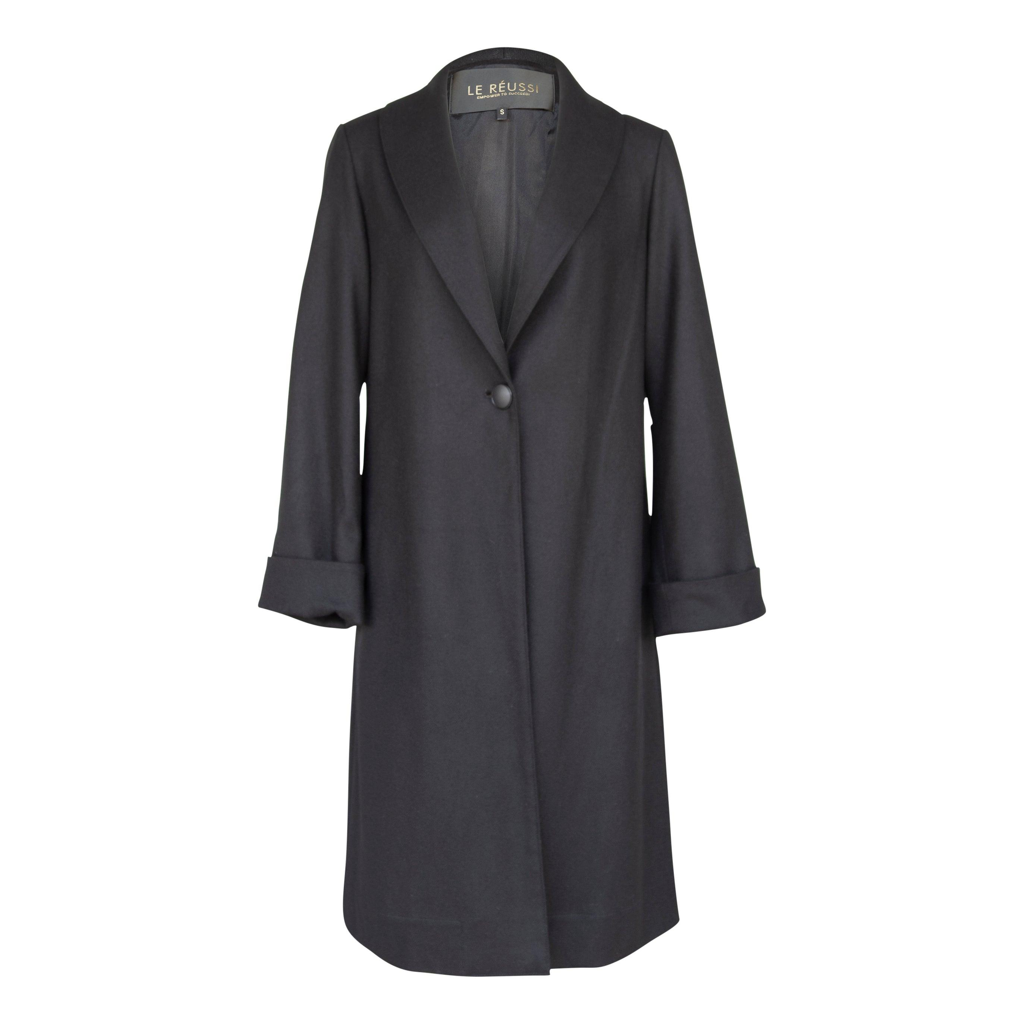 This selection of versatile, must-have staples for the woman’s wardrobe is an ongoing collection defined by clean lines that is timeless. Elegant, pure worsted wool, this minimalist, modern item is given an elegant allure with a shawl collar.