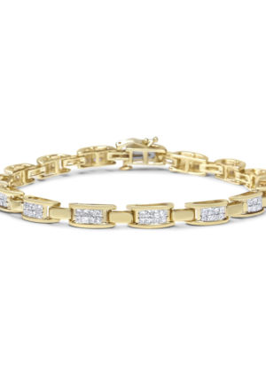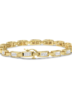 10K Yellow Gold 2.0 Cttw Invisible-Set Princess Cut Diamond Rectangular Link Bracelet (I-J Color, SI2-I1 Clarity) - 7"