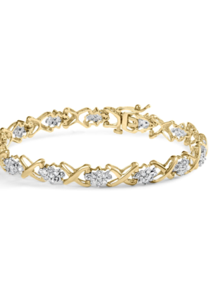 10k Yellow Gold 2.00 Cttw Diamond Cluster and Alternating "X" Link Bracelet (I-J Color, I3 Clarity) - 7"